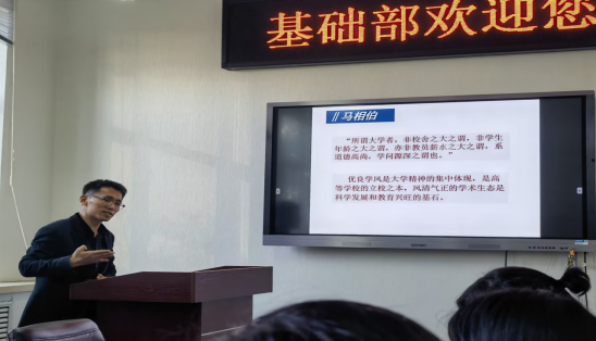 为弘扬科学精神,加强科研诚信和师德师风建设,2023年10月9日,基础部邀请学校科研处宋庆永老师在3号教学区2308会议室进行题为“科研基础知识”的指导讲座。全体党员及其他教师听取讲座,基础部副主任程薇薇主持。