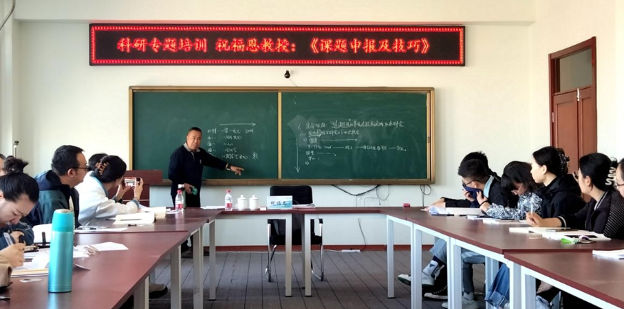 4月19日上午,学校科研处在图书馆608会议室举办《课题申报及技巧》专题讲座。学校马克思主义学院顾问、哈尔滨工程大学马克思主义学院教授、博士生导师祝福恩应邀担任主讲,学校50余名相关专业教师现场聆听讲座。科研处副处长张平主持活动。