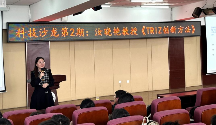 报告中,汝晓艳教授首先介绍了TRIZ(发明问题解决理论)的由来及其理论体系。随后,她通过丰富的案例阐述了TRIZ的技术系统八大进化法则、九宫格法、最终理想解、技术矛盾、创新原理等主要内容,并与学生现场互动,探讨了解决发明问题的路径。